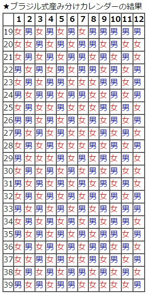 ブラジル式カレンダーは中国式産み分けカレンダーと同じく、ブラジルでの出生統計から 計算して作成された表とのことです。